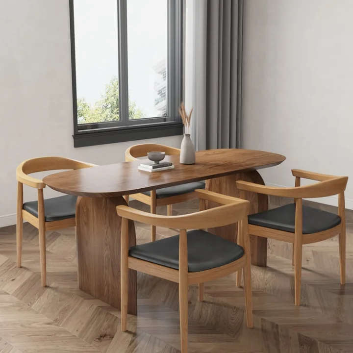 - Oval yemek masaları sohbeti yakınlaştırır.