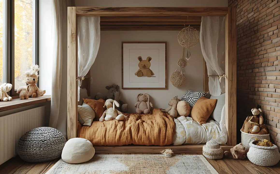 Doğadan ilham alan çocuk odalarında oyun alanları tasarımın merkezinde yer alır. Yumuşak zeminler, tırmanma köşeleri, okuma çadırları veya küçük oyun masaları çocukların yaratıcılığını destekler. Oyun alanlarının net şekilde tanımlanması, odanın daha düzenli ve işlevsel kullanılmasını sağlar.