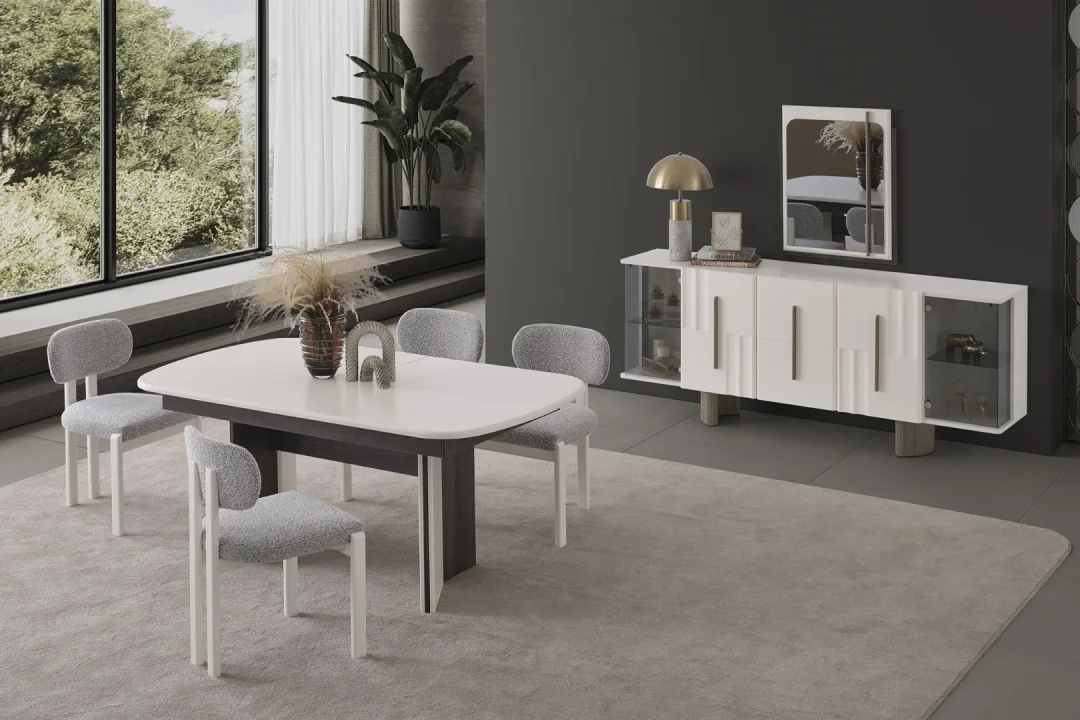 Modern yemek odası modelleri seçilirken sadece görünüm değil, kullanım konforu da büyük önem taşır. Masa ölçüleri, sandalye ergonomisi, konsol ve vitrin gibi tamamlayıcı parçaların uyumu modern dekorasyonun temelini oluşturur. Hevin Mobilya, kaliteli malzeme yapısı ve özenli üretim anlayışıyla modern yemek odası takımı seçeneklerinde uzun ömürlü çözümler sunar. Farklı renk ve ölçü alternatifleri sayesinde her mekâna uygun kombinasyonlar oluşturmak mümkün.